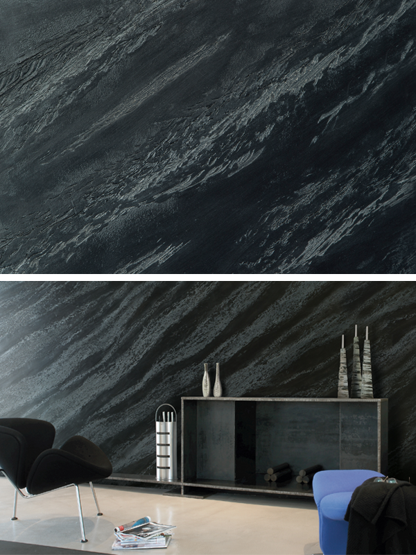 まるで鉄材のような表面が特徴のメテオレ8。メタリックやパールが作りだす複雑なテクスチャーの濃淡が、モダンかつコンテンポラリーな空間を作りだす。