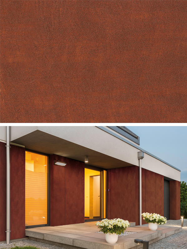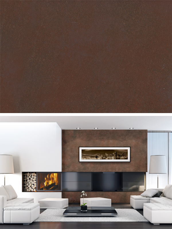塗料に含まれる細かい金属片の独特な色合いと質感でサビの風合いを忠実に再現。モダンにもエレガントにも空間に合わせて表情を変え、トレンド感のある空間を演出。屋外使用可。