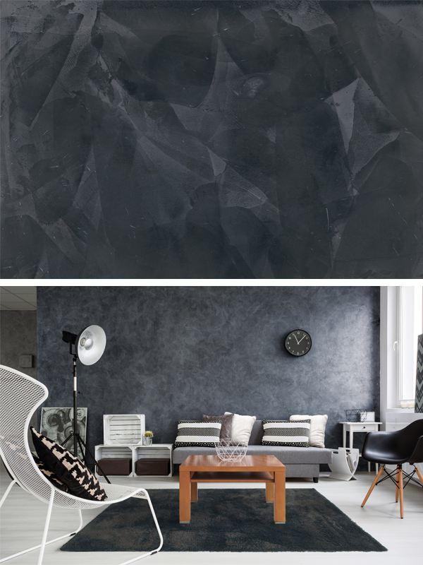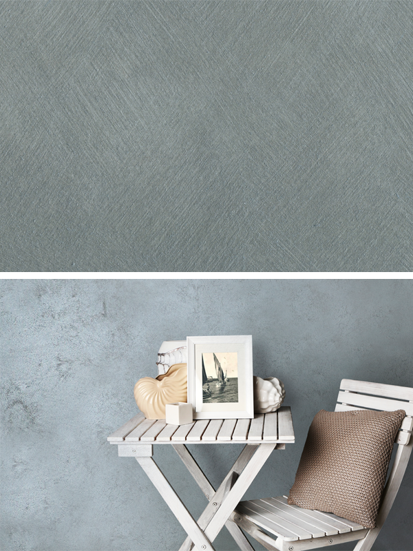 セメントのようなリアリティのある質感を再現。仕上げ方次第で様々な表情を見せる。現代的なインテリアにも、シックでスマートなインテリアにもマッチ。