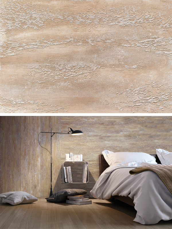 光沢のあるきらびやかな仕上がりで、魅惑的な美しさを持ち、砂の反射で光の移ろいを作り出す。彩る空間のスタイルを選ばず、趣向に沿って唯一の洗練された環境を生み出す。